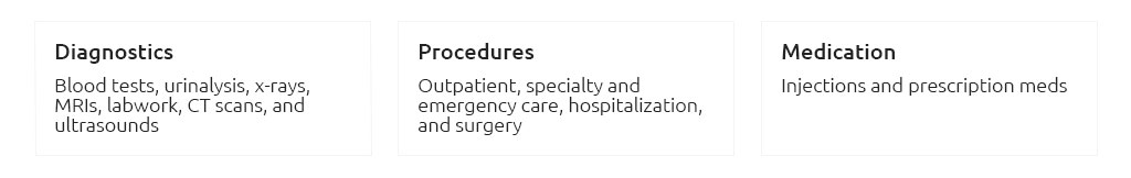 - Emergency and specialty: ER visits, imaging, surgery, oncology - subject to limits.